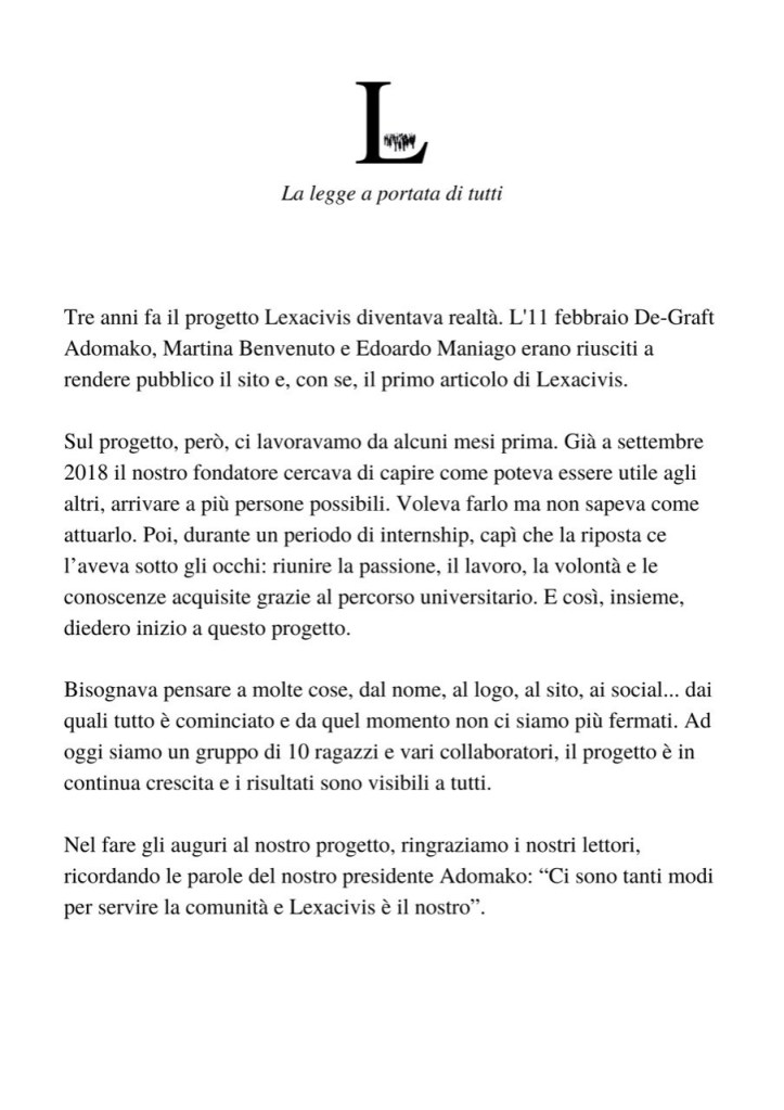 Condividi: Fai clic per condividere su X (Si apre in una nuova finestra) X Fai clic per condividere su Facebook (Si apre in una nuova finestra) Facebook Mi piace Caricamento... Correlati Tre anni di Lexacivis 11 febbraio 2022 / Lexacivis / Lascia un commento